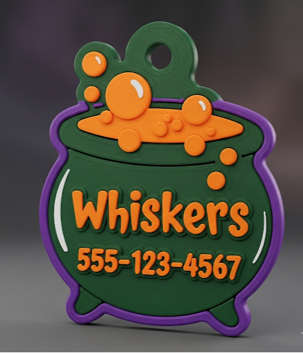 Our Halloween Cauldron Tag brings a playful mix of color, charm, and safety — perfect for cats and dogs who love to stand out. Custom engraved with your pet’s name and phone number, it’s a tag that’s both spooky and smart.